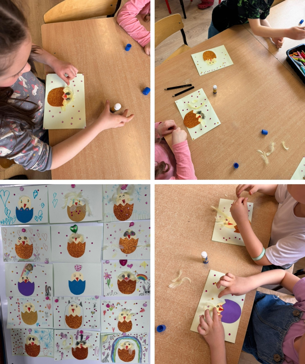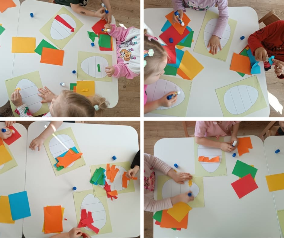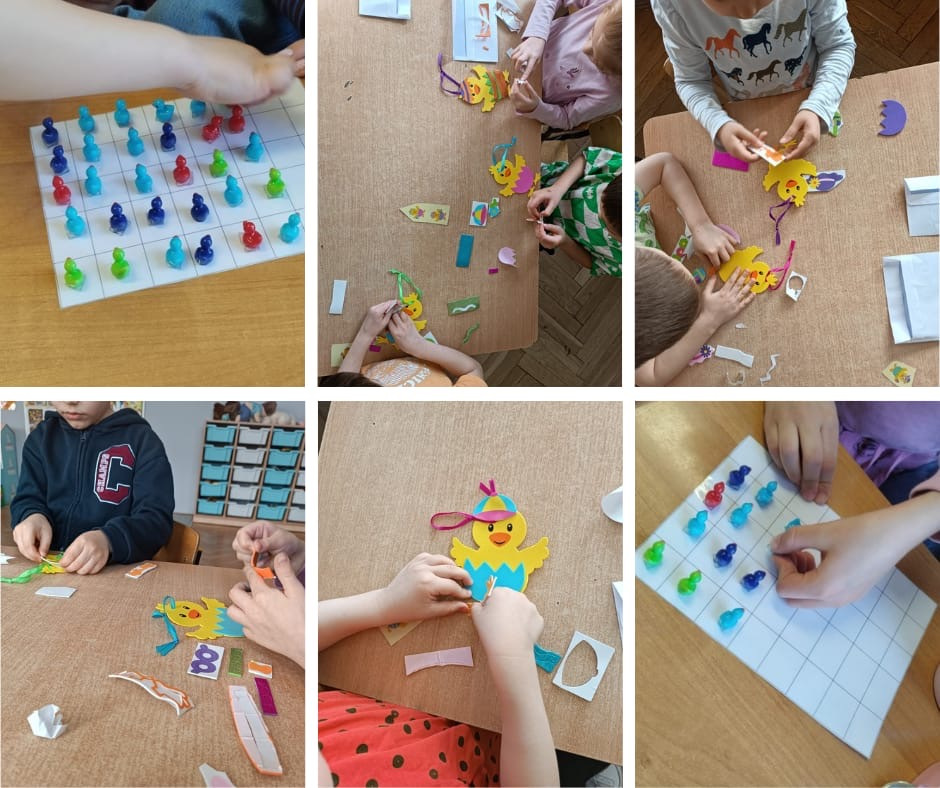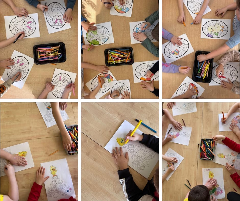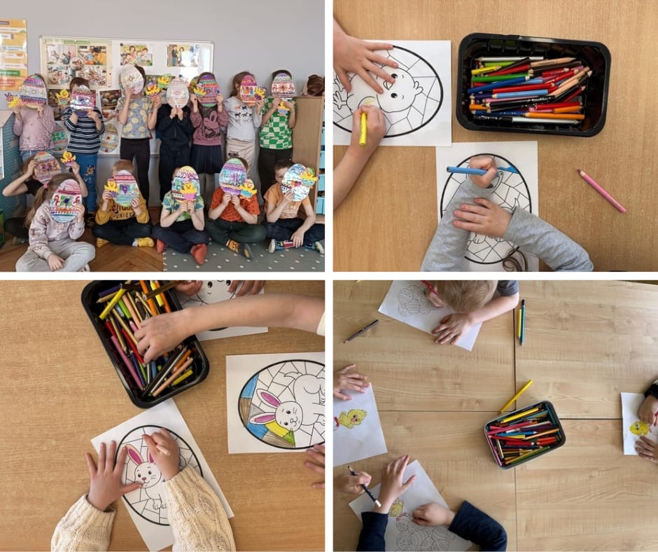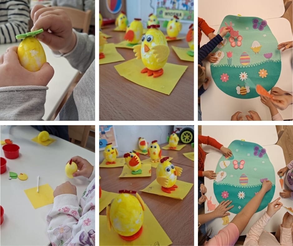 W przedszkolu zrobiło się świątecznie i bardzo kolorowo! Dzieci z radością kolorowały wielkanocne obrazki, malowały, tworzyły kurczaczki z jajek oraz wyklejały pisanki.