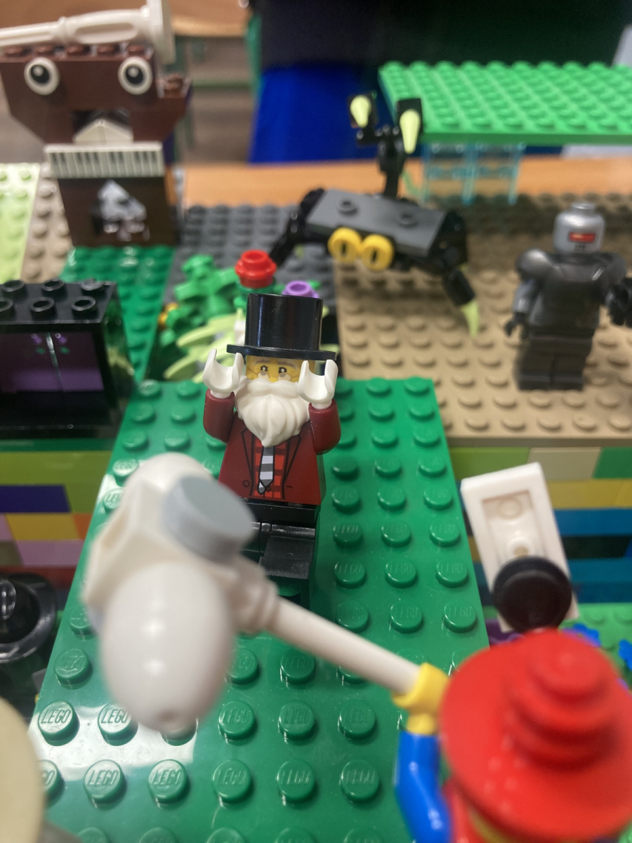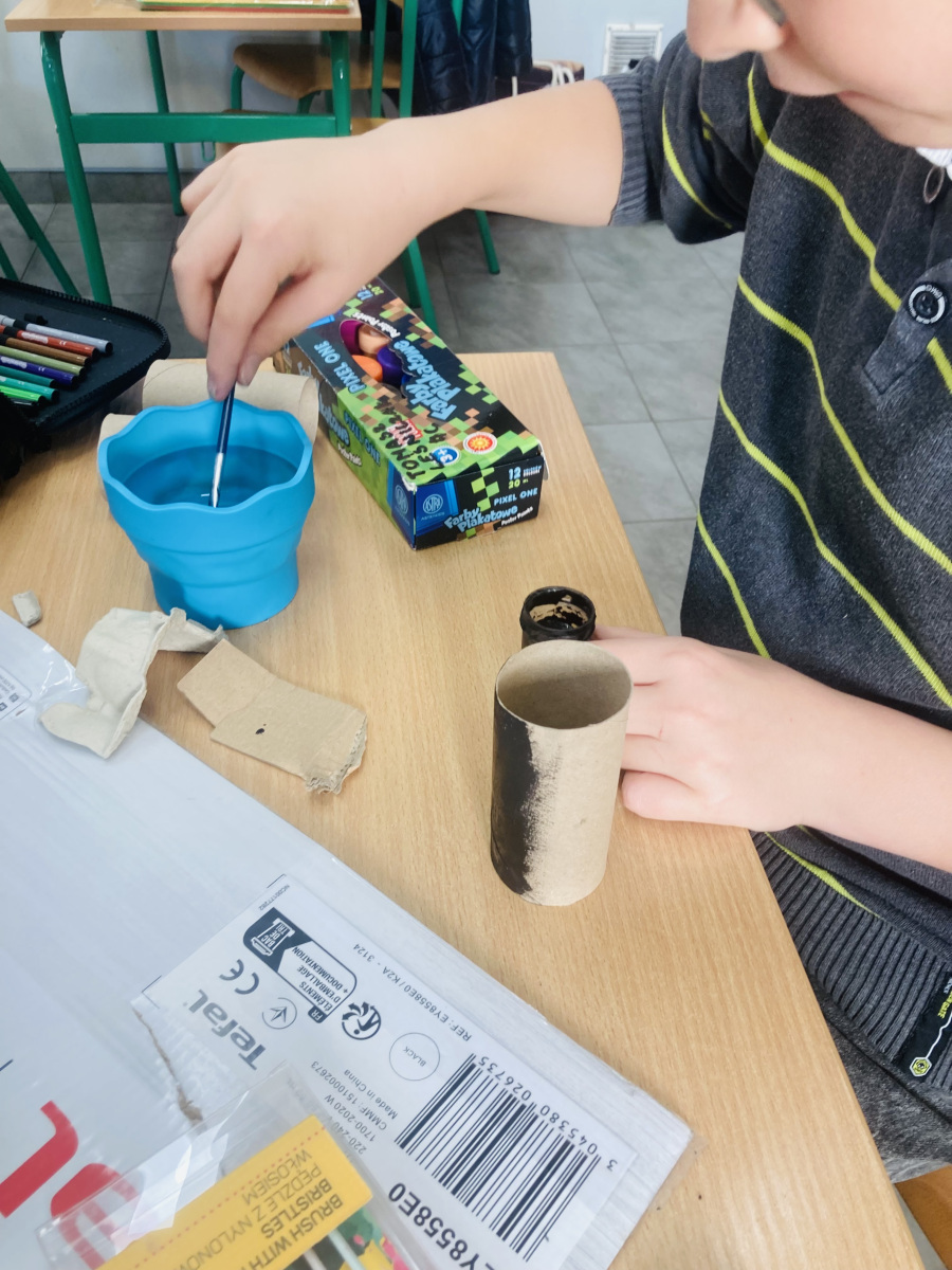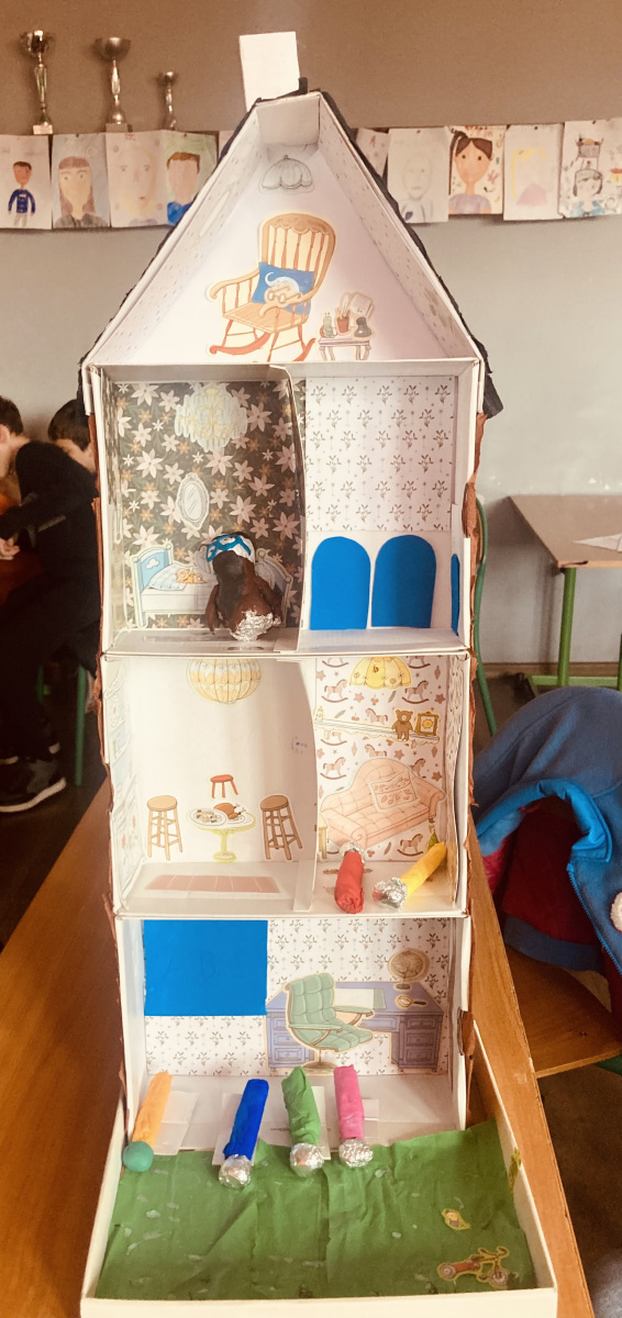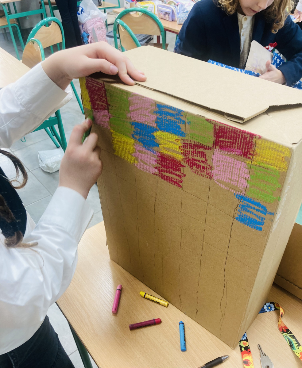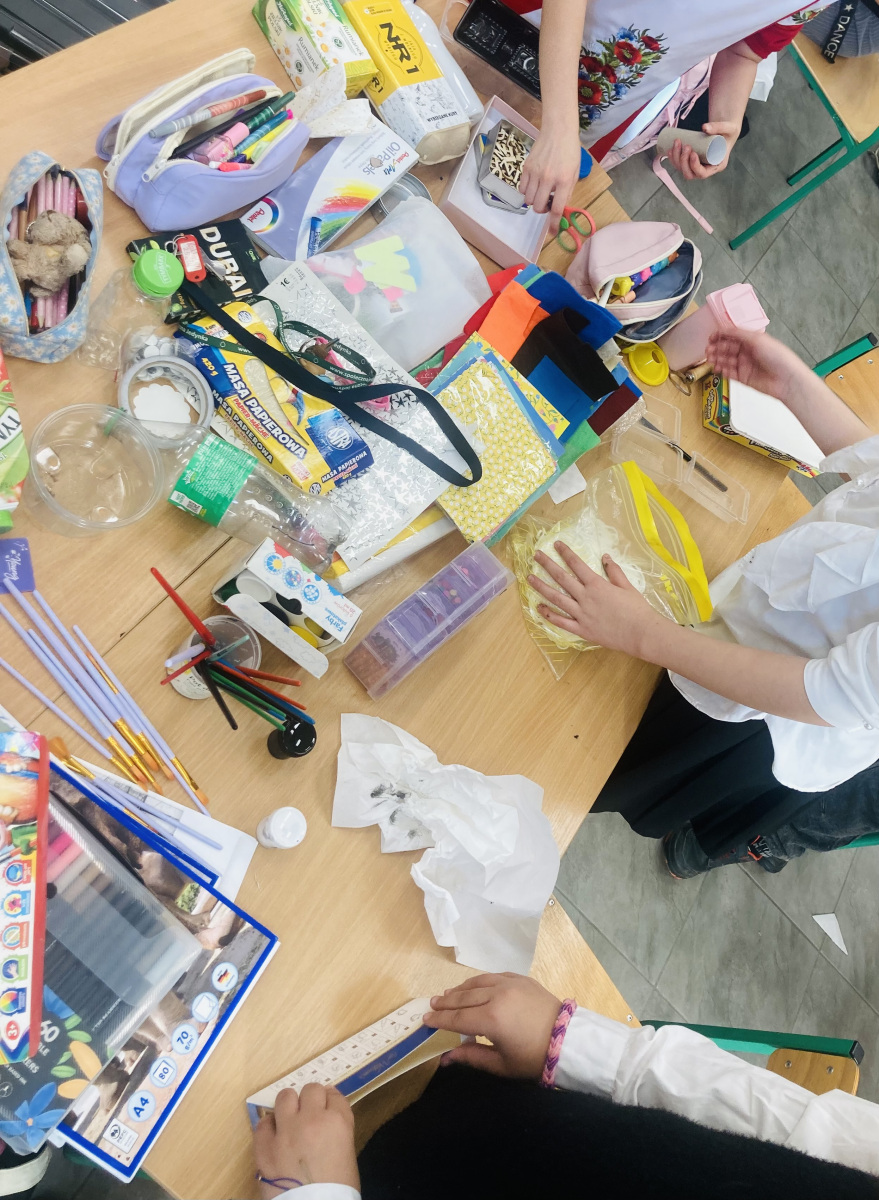 Klasy 4a i 4c na chwilę przeniosły się do świata lektury Akademia pana Kleksa i uczestniczyły w niezwykłych lekcjach z książki. Nasi uczniowie brali udział w lekcjach kleksografii, przędzenia liter, geografii czy potretologii. W trakcie zajęć losowali kolorowe szkiełka, rozwiązywali test wiedzy z balonami, rozplątywali nici, pisali kartki pocztowe do pana Kleksa, rysowali portrety zgodnie z opisem postaci, a na koniec budowali makiety akademii. Budowle były nie tylko sprawdzeniem czytania ze zrozumieniem, ale przede wszystkim twórczą zabawą z tekstem literackim. Powstały wspaniałe projekty m.in. z lego, pudełek, kartonów, a nawet zbudowane w Minecrafcie i Robloxie. Na każdej lekcji rozdawane były błyszczące piegi, na które uczniowie cieszyli się bardziej, niż na zwykłe oceny z zadania.
