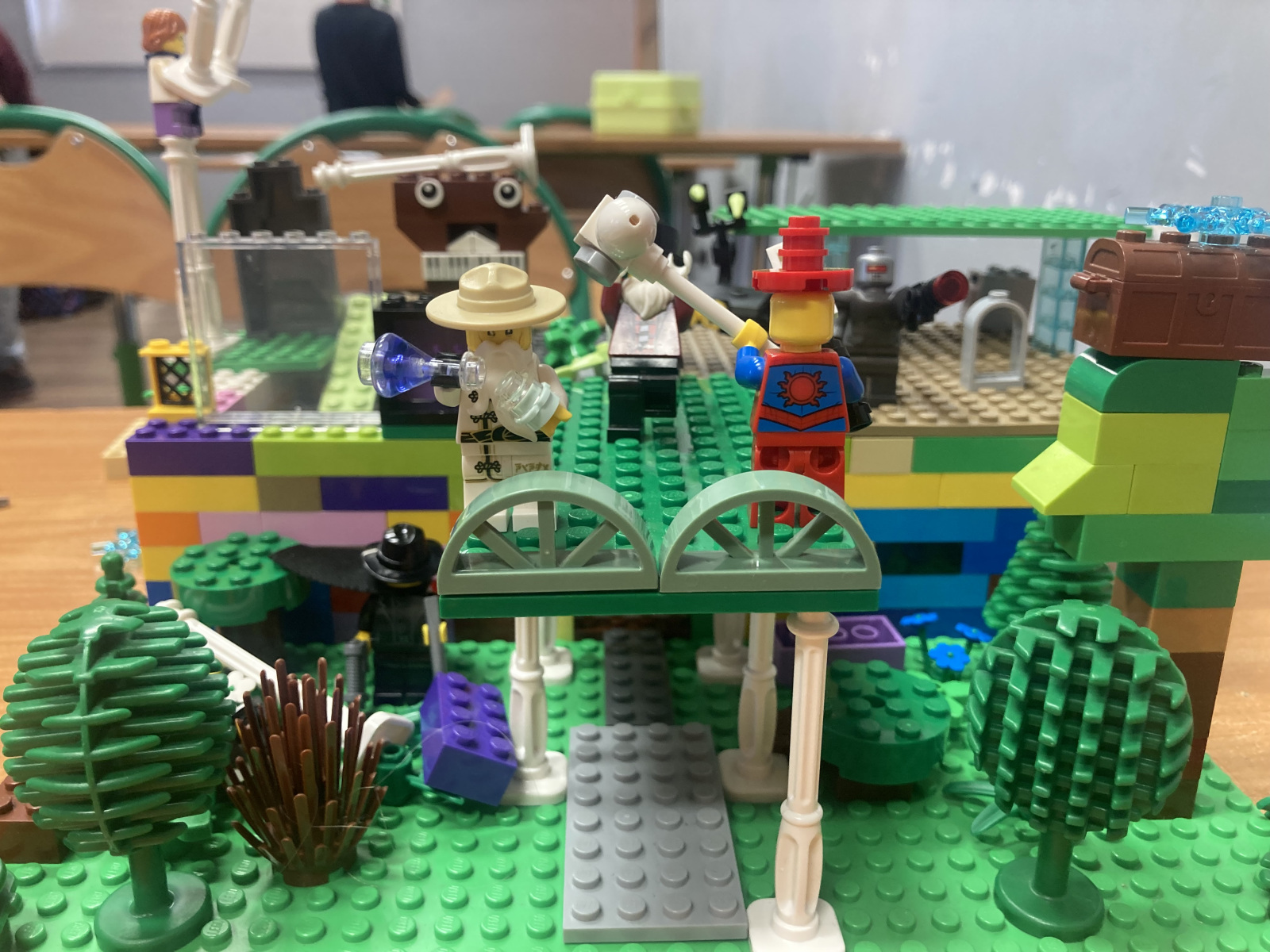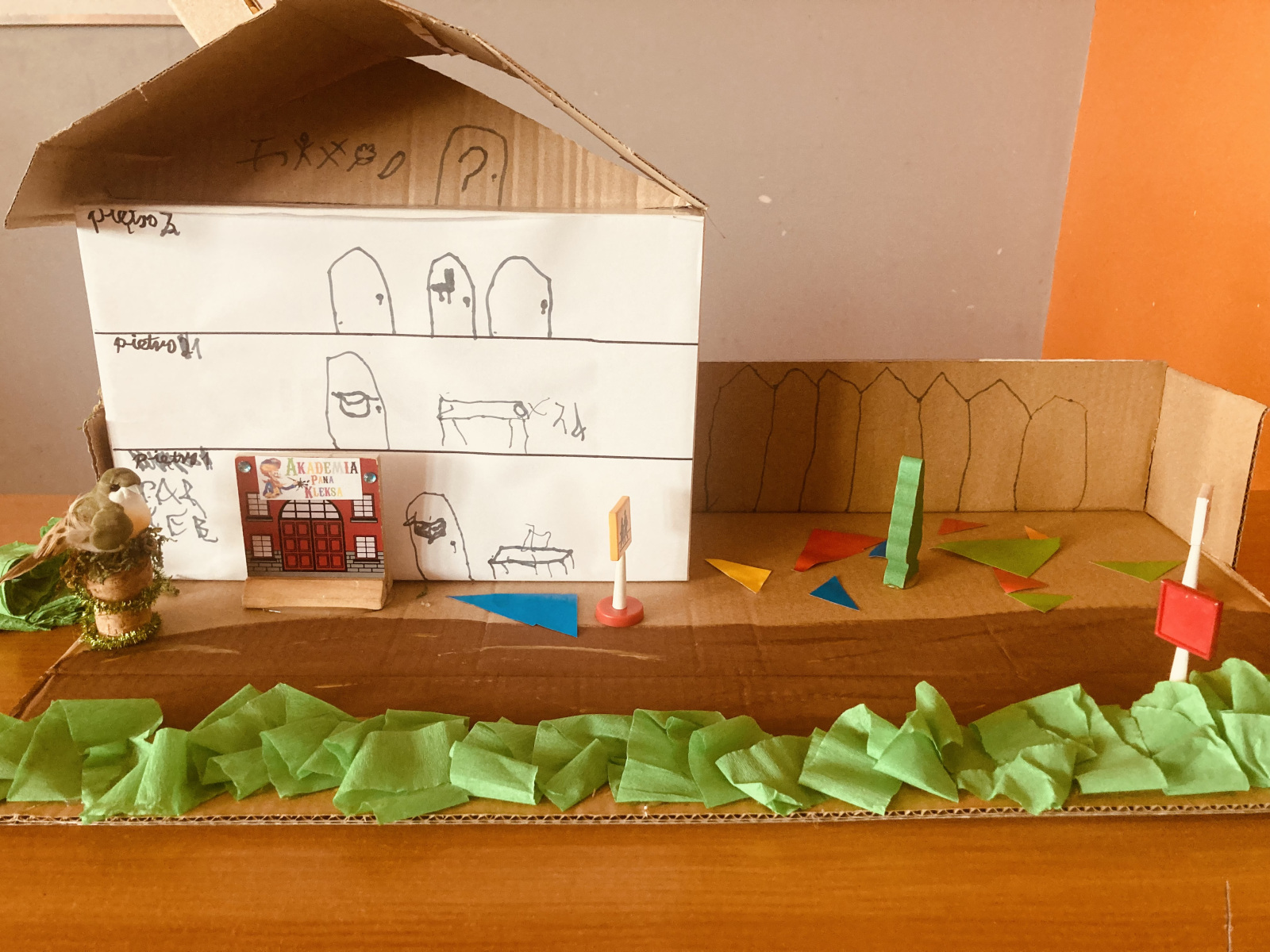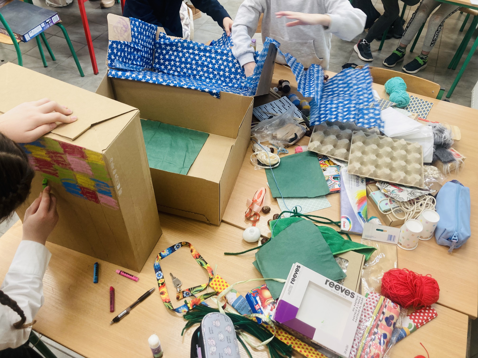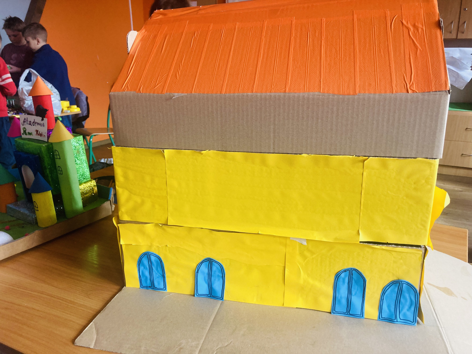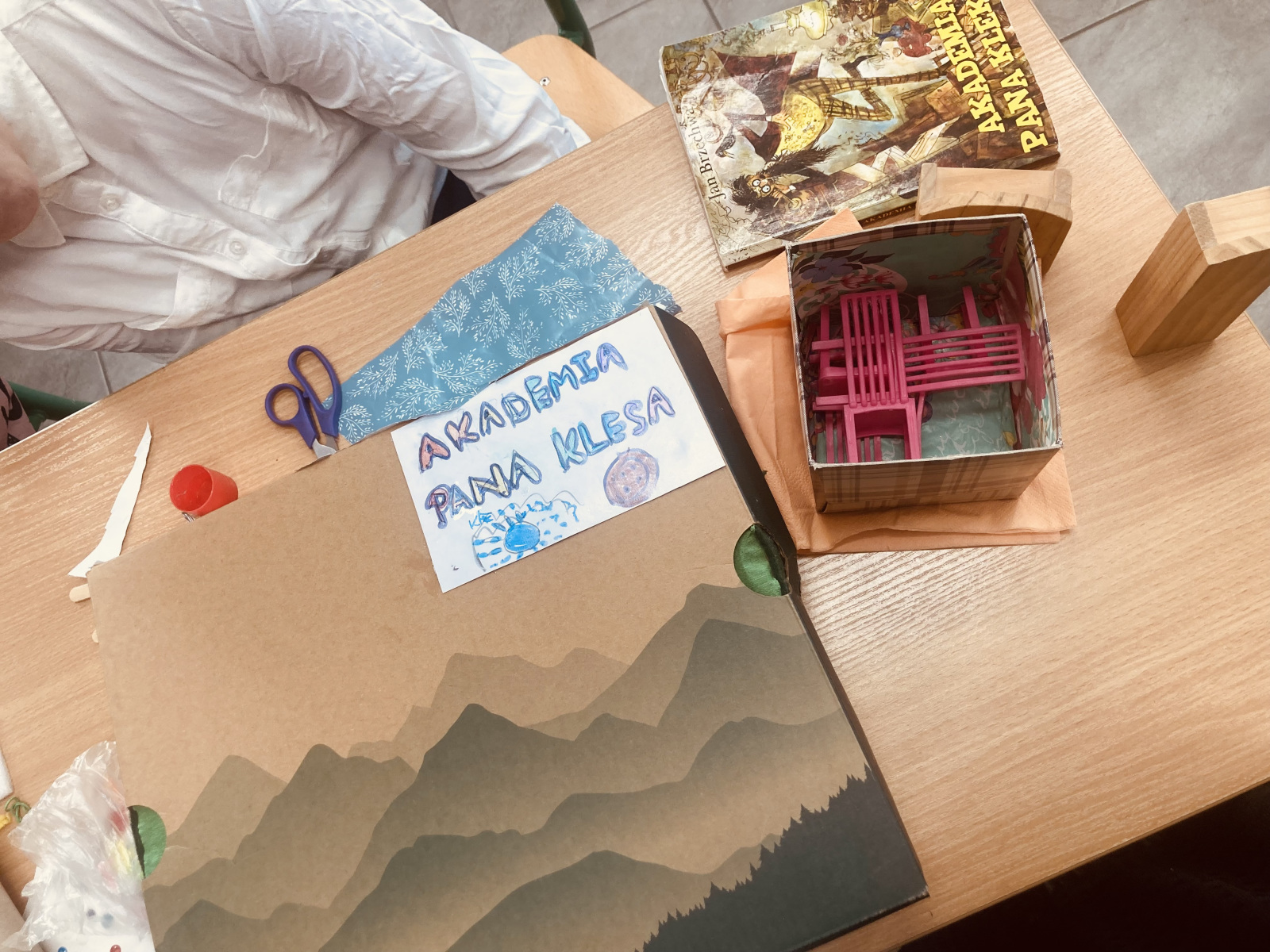Klasy 4a i 4c na chwilę przeniosły się do świata lektury Akademia pana Kleksa i uczestniczyły w niezwykłych lekcjach z książki. Nasi uczniowie brali udział w lekcjach kleksografii, przędzenia liter, geografii czy potretologii. W trakcie zajęć losowali kolorowe szkiełka, rozwiązywali test wiedzy z balonami, rozplątywali nici, pisali kartki pocztowe do pana Kleksa, rysowali portrety zgodnie z opisem postaci, a na koniec budowali makiety akademii. Budowle były nie tylko sprawdzeniem czytania ze zrozumieniem, ale przede wszystkim twórczą zabawą z tekstem literackim. Powstały wspaniałe projekty m.in. z lego, pudełek, kartonów, a nawet zbudowane w Minecrafcie i Robloxie. Na każdej lekcji rozdawane były błyszczące piegi, na które uczniowie cieszyli się bardziej, niż na zwykłe oceny z zadania.