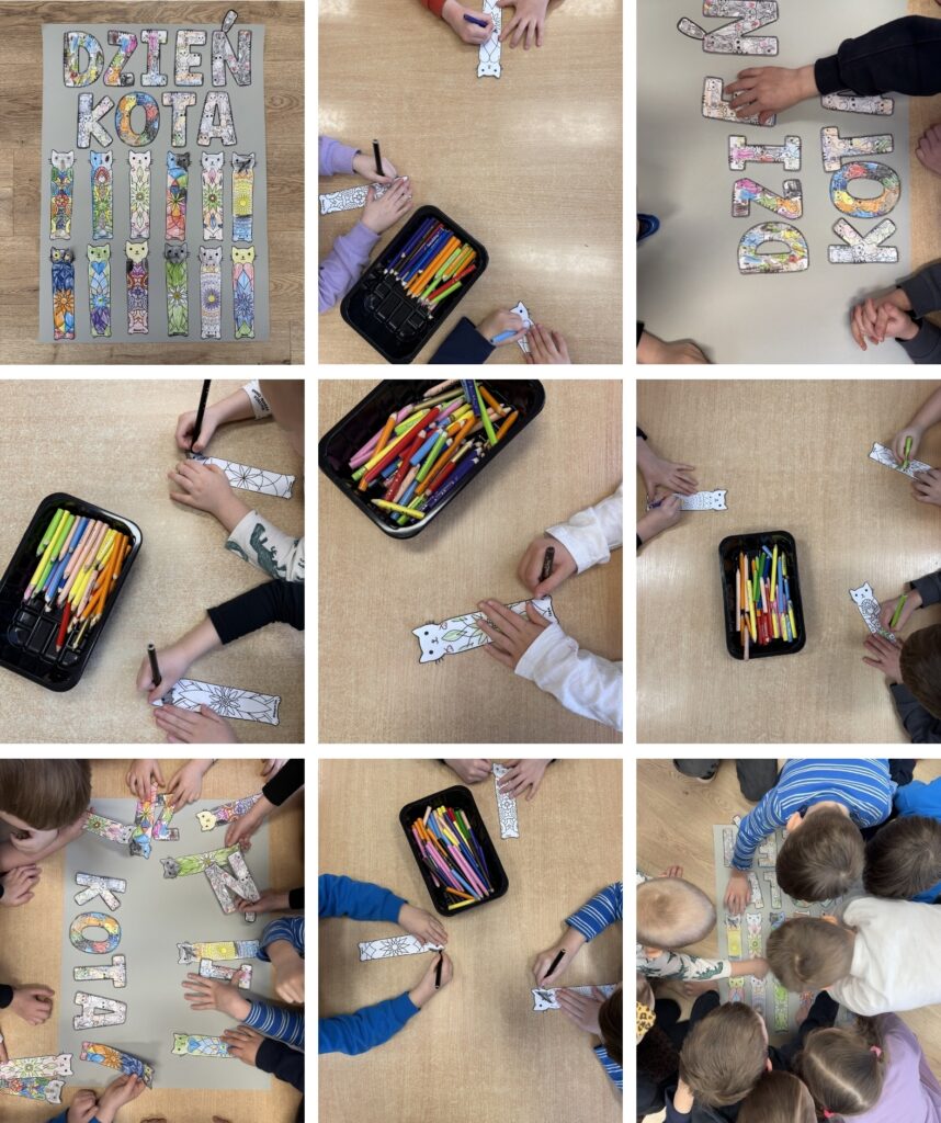 17 lutego świętowaliśmy wyjątkowy dzień wszystkich mruczków! Rozmawialiśmy o tym, jak dbać o koty, jakie mają zwyczaje oraz poznawaliśmy ciekawostki o ich zachowaniu. Dzieci chętnie dzieliły się opowieściami o swoich domowych pupilach i wspólnie odkrywaliśmy koci świat. Nie zabrakło kreatywnych działań! Powstały przepiękne portrety kotów, kolorowe zakładki oraz papierowe prace, które rozwijały wyobraźnię i sprawność manualną naszych przedszkolaków. Były także zabawy ruchowe inspirowane kocimi ścieżkami i zadania, które wymagały sprytu niczym u prawdziwego kota! To był dzień pełen uśmiechu, radości i… mruczenia!