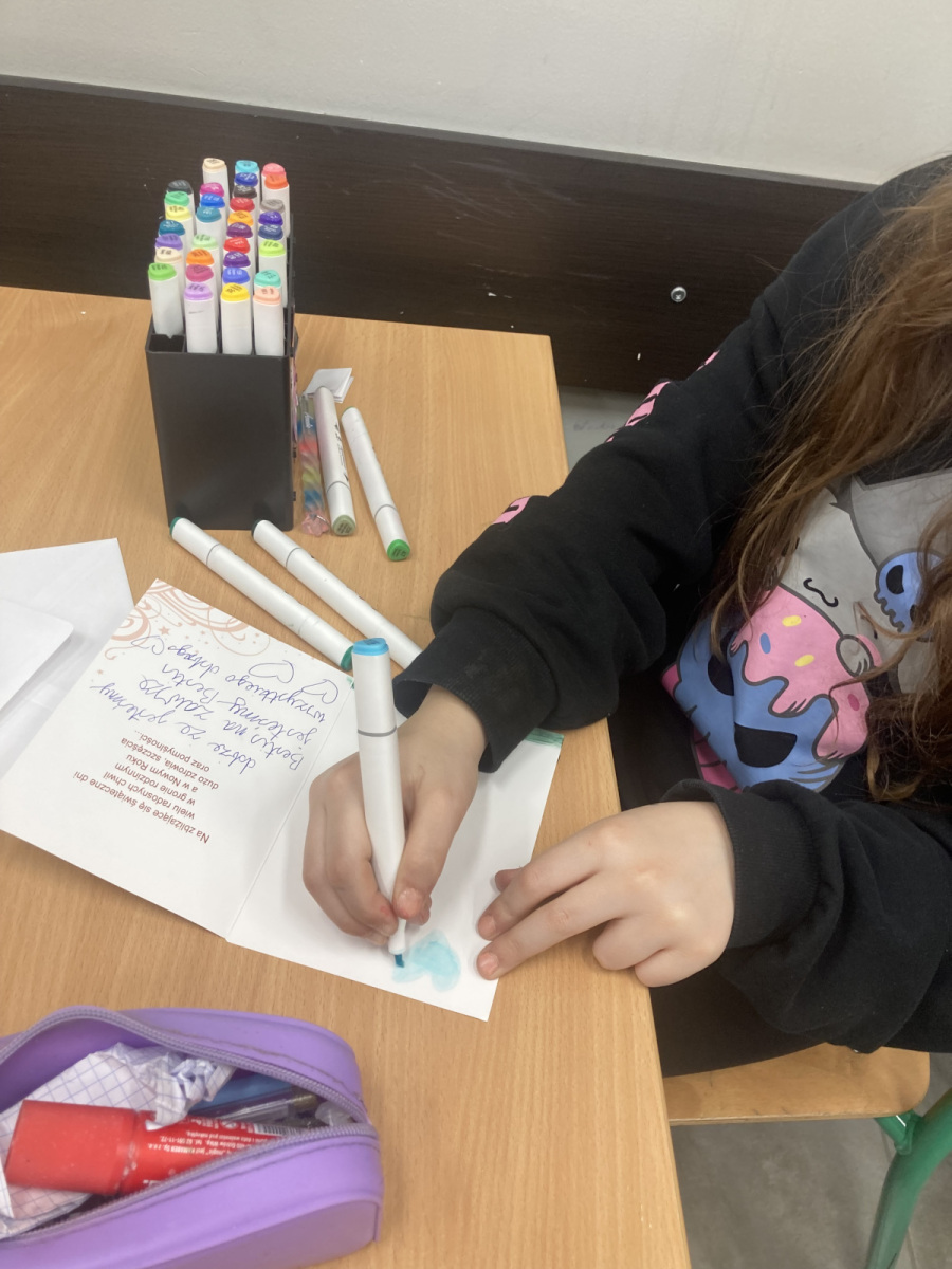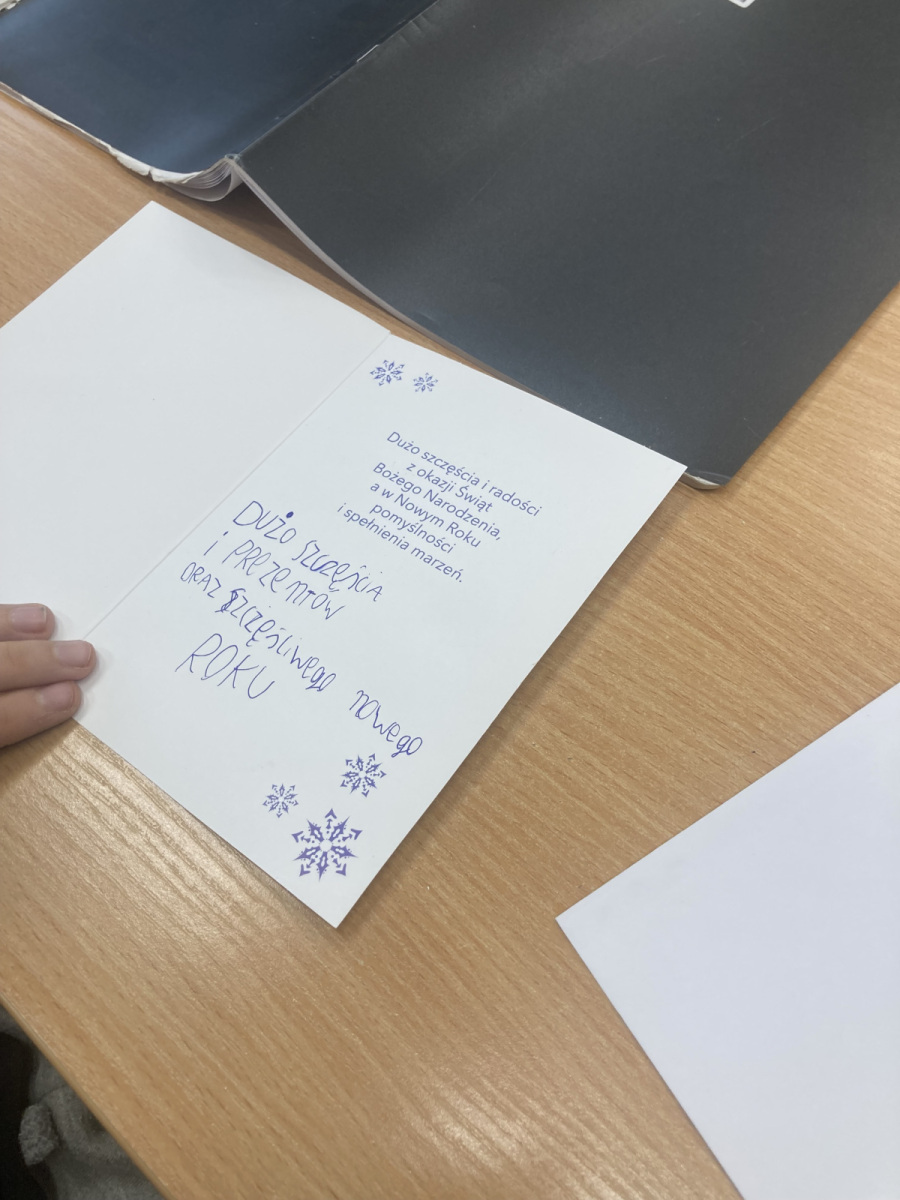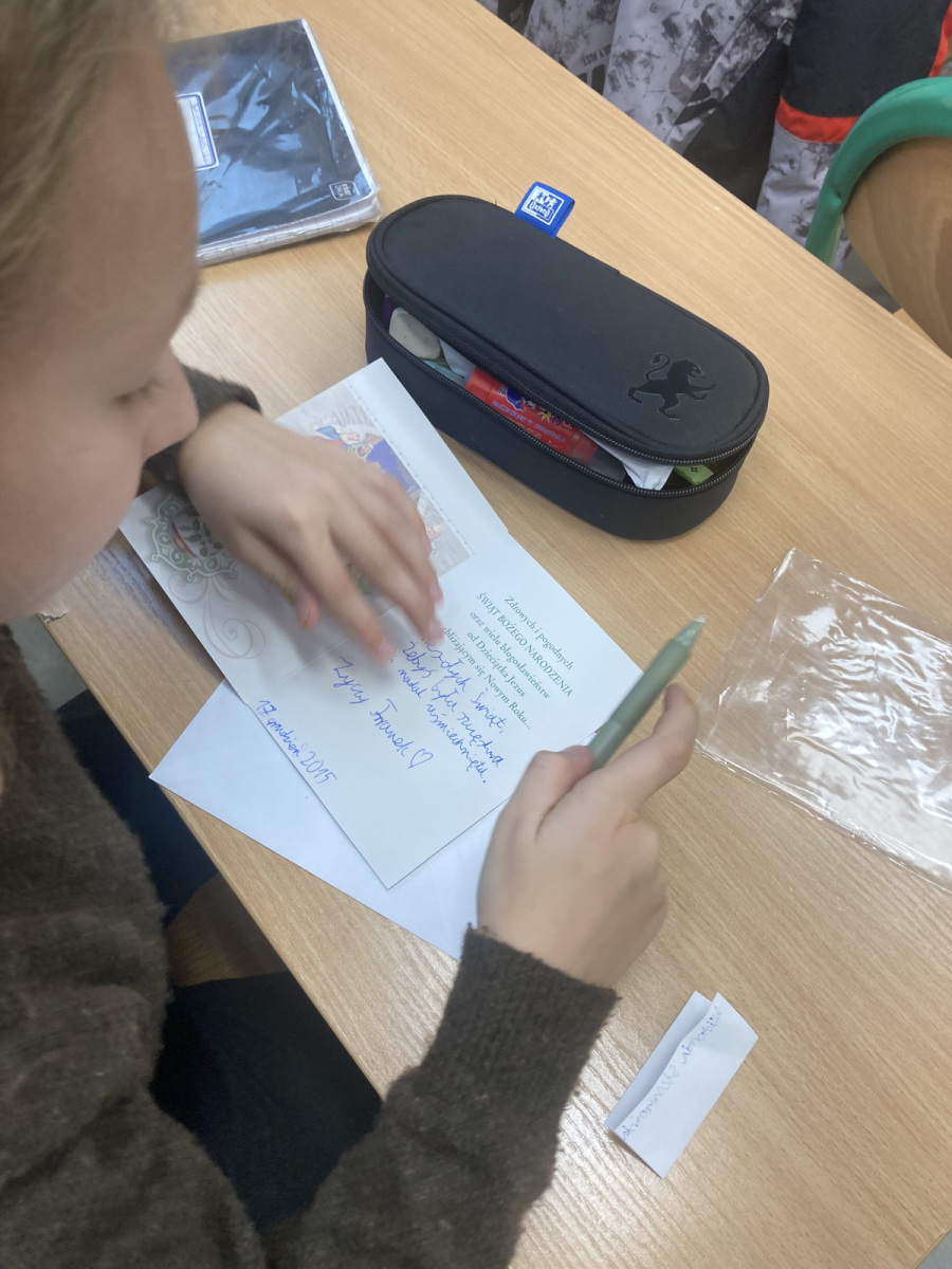 Dziś klasa 4 wziełą udział w akcji „Idą święta, nie o SMS-esie, lecz o kartce pamiętaj” Na lekcji języka polskiego wróciliśmy do tradycji pisania i wysyłania kartek pocztowych z życzeniami. Wszytsko odbyło sie z odrobiną tajemnicy, bo każdy losował osobę i nie zdradzając do kogo pisze, tworzył życzenia, rysował obrazki i adresował kopertę. Teraz pozostaje nam czekać na listonosza i odebrać swój pierwszy list i życzenia na Święta Bożego Narodzenia.