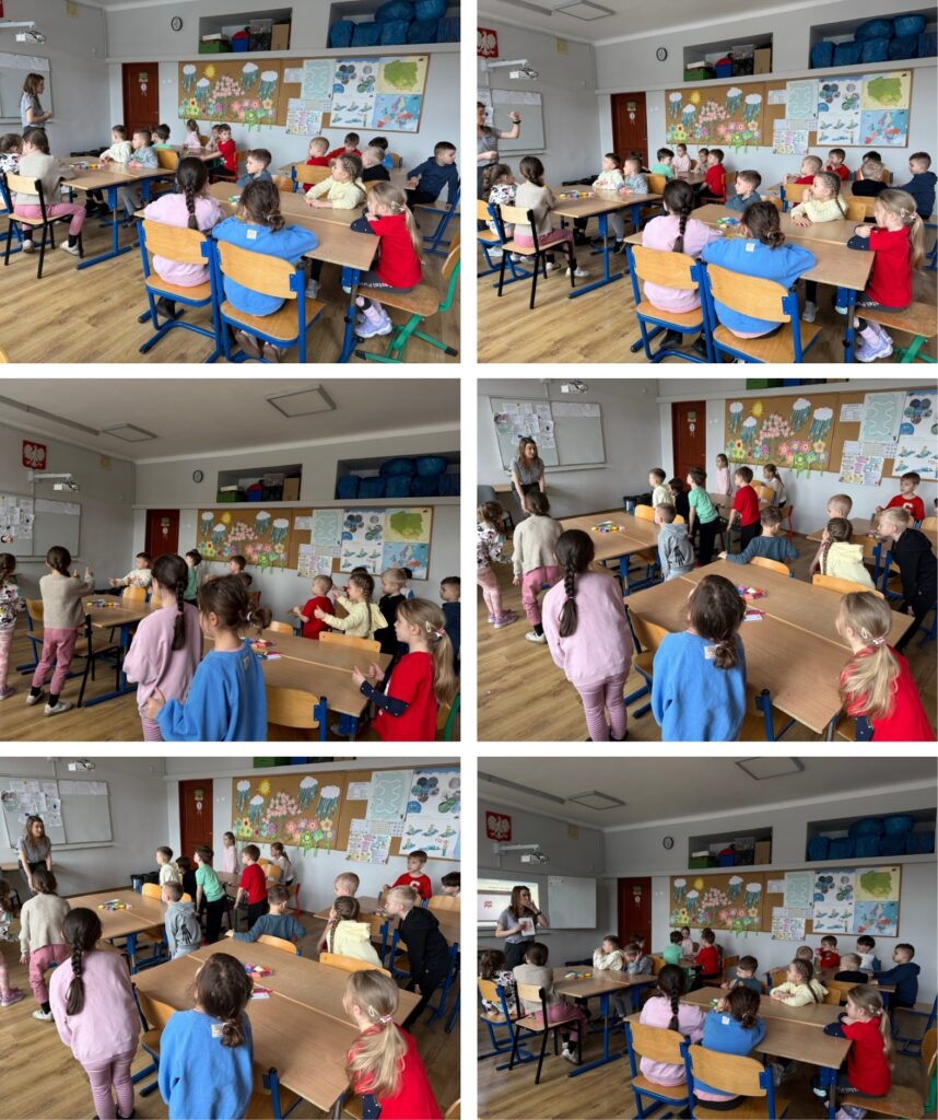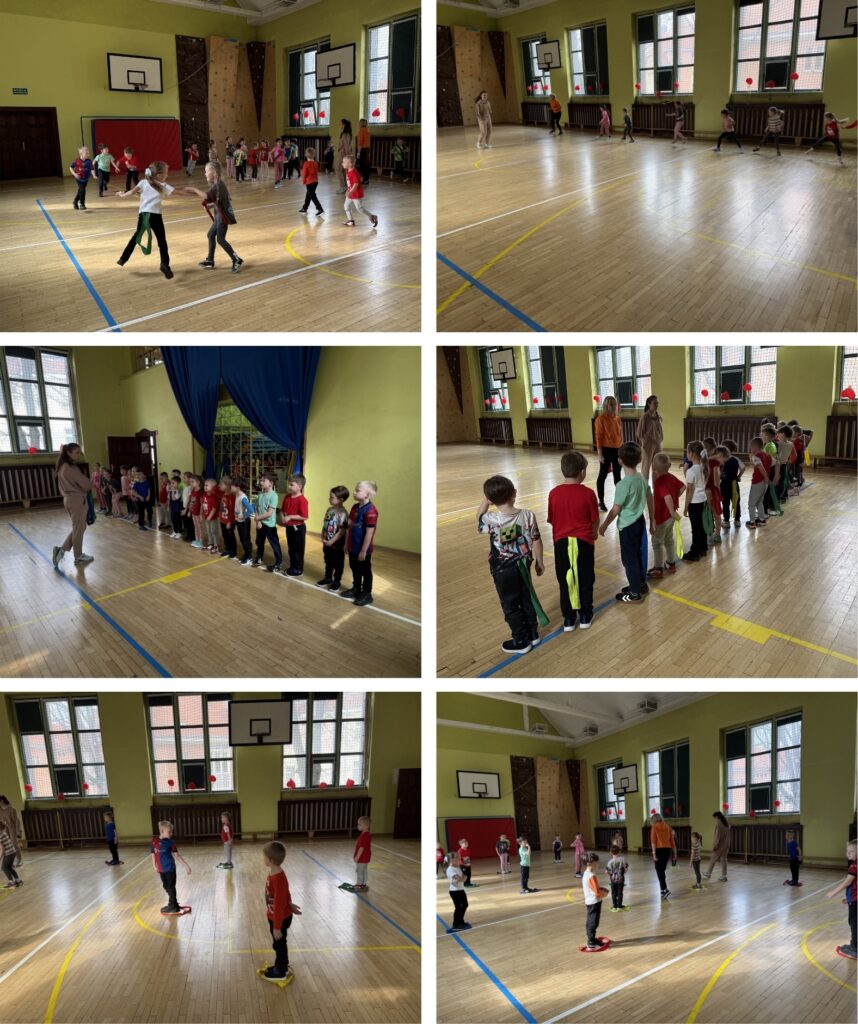 Po zajęciach językowych dzieci przeniosły się na salę gimnastyczną, gdzie aktywnie spędziły czas . Były gry zespołowe, ćwiczenia ruchowe oraz zabawy rozwijające koordynację i sprawność fizyczną. Nie zabrakło śmiechu, zdrowej rywalizacji i świetnej zabawy.