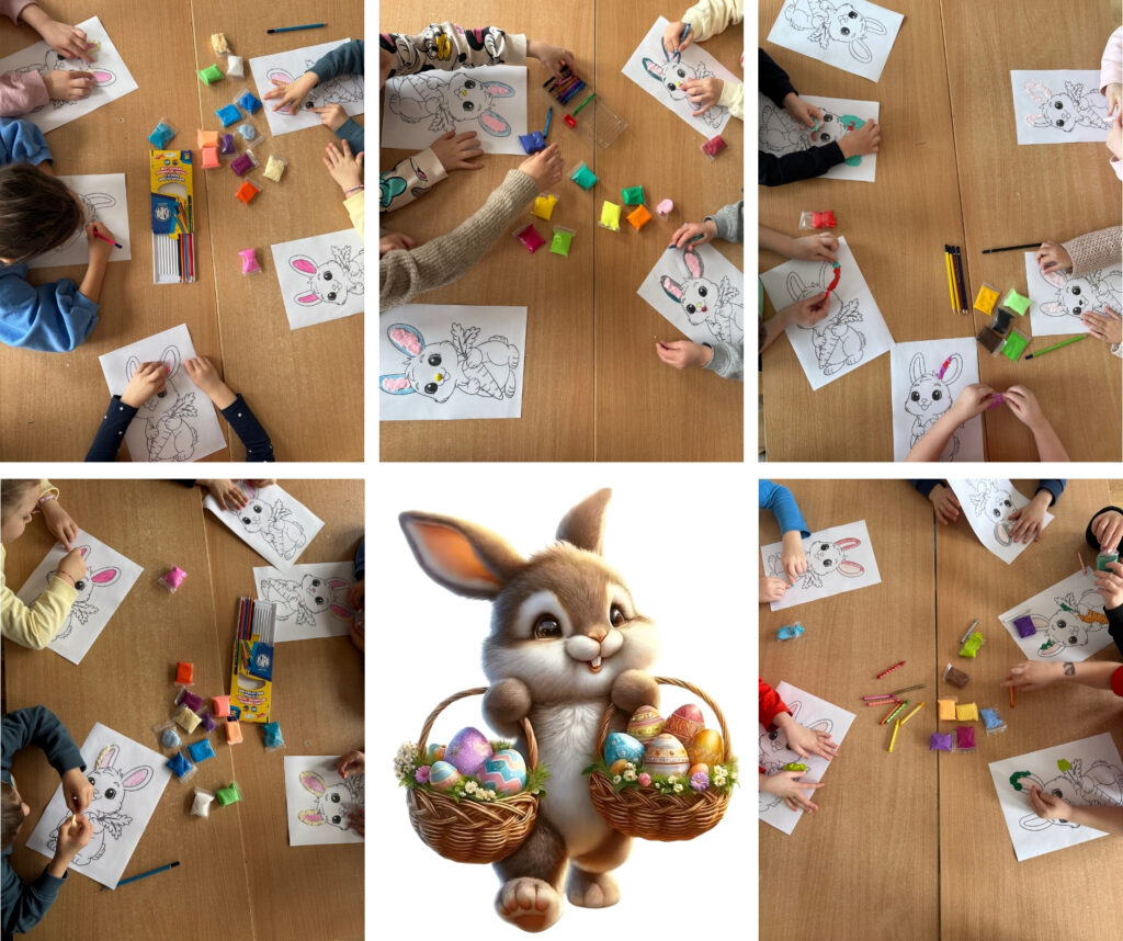 Po raz kolejny uczestniczyliśmy w piątkowych zajęciach dla przedszkolaków. Tym razem  w zajęciach z języka angielskiego. Dzieci poznały części ciała oraz utrwaliły sobie nazwy kolorów, a nauce towarzyszyły wesołe piosenki. W związku ze zbliżającą się Wielkanocą wykonaliśmy także piękne prace plastyczne.