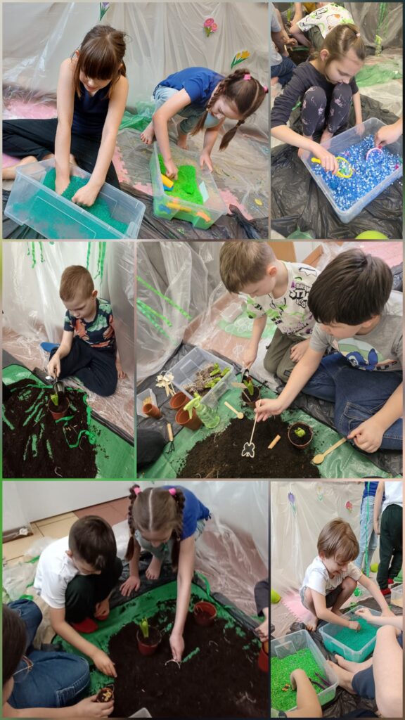 Uczniowie z ogromnym zaangażowaniem już na dobre przywitali wiosnę – poprzez zabawy sensoryczne, sadzenie kwiatów, po obserwację budzącej się do życia przyrody.